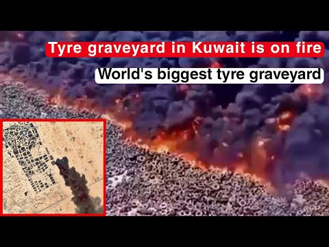The world’s biggest tire graveyard can be found in Kuwait in the Sulaibiya area. Fire is a significant issue at Kuwait's tire graveyard, and numerous fires have been consistently reported over the years. The smoke is being blown away to the direction of the sea, and not inland.